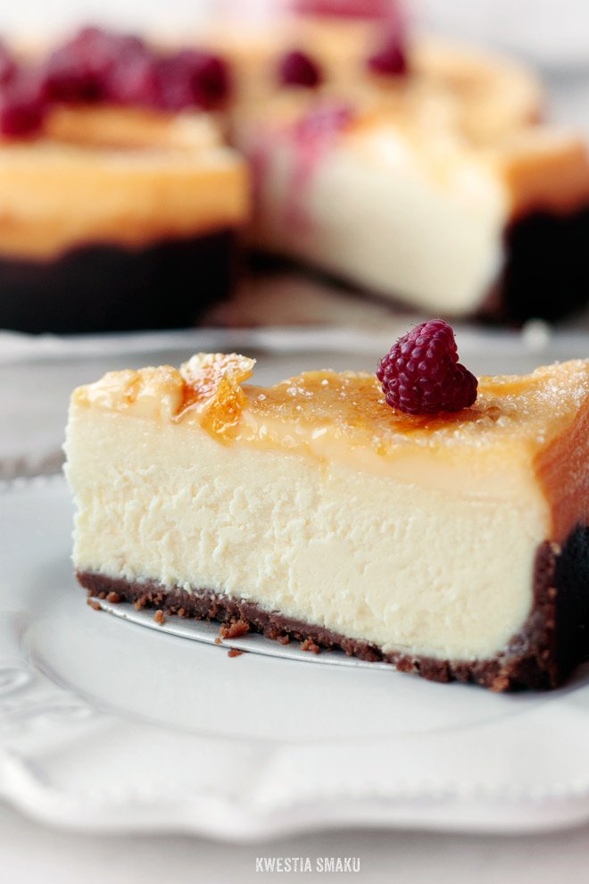Sernik jakiego jeszcze nie jedliście! W ścisłej czołówce najlepszych serników Kwestii Smaku, obok dekadenckiego i wiosennego. Przepyszna kremowa masa serowa z dodatkiem mascarpone i białej czekolady, pokryta warstwą najlepszego kremu na świecie - crème brûlée wykończonego słodką skorupką z karmelizowanego cukru. Idealny spód z dodatkiem świeżych orzechów laskowych dodaje sernikowi smaku i klasy.