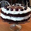 Kakaowy tort z wiśniami lub czereśniami oraz bitą śmietaną.