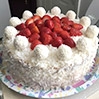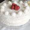 Świetny tort o smaku znanych kokosowych pralinek Raffaello przełożony kremową masą kokosową i warstwą owocową dla przełamania smaków. Można użyć mrożonych owoców lub powideł, dżemu.