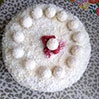 - Po posmarowaniu tortu masą kokosową obłożyć go wiórkami kokosowymi, wstawić na około 1 - 3 godziny do lodówki, udekorować.