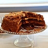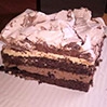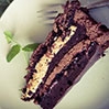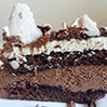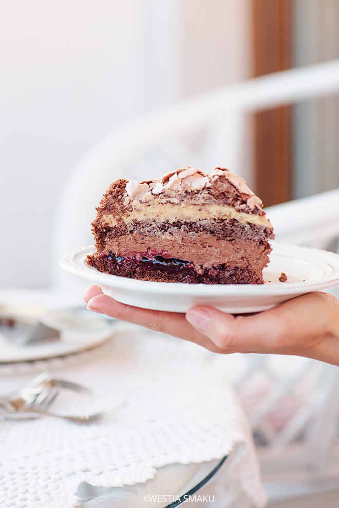 Wyjątkowy i jedyny taki tort. Z czekoladową bezą, przełożony czekoladową truflą, kremem z masła orzechowego oraz konfiturą z czarnej porzeczki.