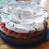 - Na wierzch położyć bezę, boki posmarować resztą kremu, obłożyć rozmiksowanymi w rozdrabniaczu okruszkami biszkoptu (lub tartą czekoladą czy rozdrobnionymi orzechami jeśli brakuje okruszków). Wstawić do lodówki na minimum 3 godziny.