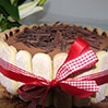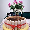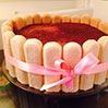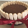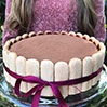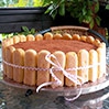 - Biszkopty przyciąć do odpowiedniej wysokości, posmarować powidłami i przytwierdzić do boków tortu. Przewiązać wstążeczką.