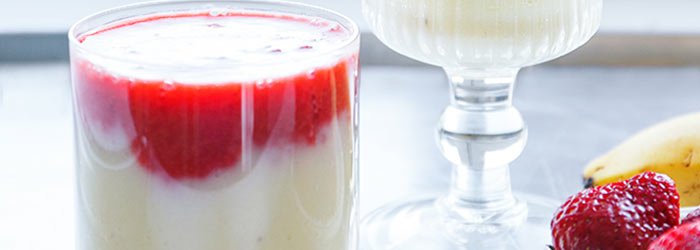 - Zamiast miąższu ananasa można użyć jogurtu naturalnego i zrobić koktajl z białą częścią na górze, czerwoną na dole.