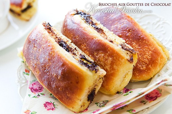 Według mnie są wspaniałe zarówno na śniadanie do kawy jak i na podwieczorek z herbatą. Dzieci je wprost uwielbiają. Mięciutkie, pięknie żółte ciasto drożdżowe, bardzo maślane i delikatne, jak na klasyczną drożdżową BRIOCHE. Bułeczki przełożone są kremem pâtissière oraz kawałeczkami ciemnej czekolady. Ciasto najlepiej przygotować wieczorem, odstawić do lodówki do wyrośnięcia a rano upiec brioszki.