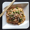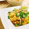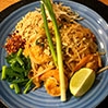 Pad Thai to chyba najsłynniejsze na świecie tajskie danie składające się z makaronu ryżowego, sosu, jajka. Można wybrać wersję z kurczakiem, krewetkami czy samymi warzywami.