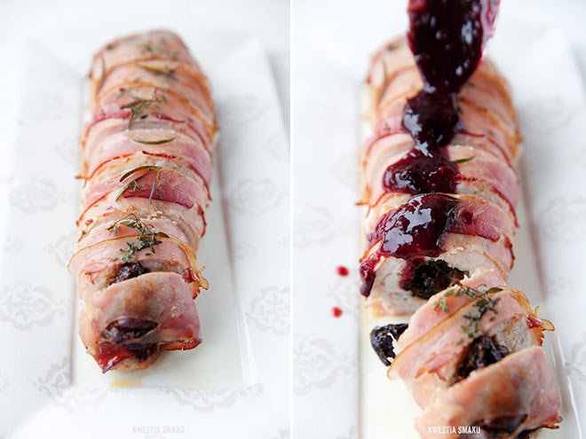 W sezonie jesienno-zimowym często gotuję wykorzystując czerwone wino. Lubię łączyć je z suszonymi śliwkami, jak w dzisiejszym przepisie na filet z indyka. Danie jest błyskawiczne do przygotowania — filet nadziewam suszonymi śliwkami i zawijam w suszoną szynkę. Nadzienie doprawiam przyprawami korzennymi oraz skórką z mandarynki. Podczas gdy indyk się piecze, robię szybki sos na bazie czerwonego wina z powidłami śliwkowymi i sokiem z mandarynki, wszystko również przyprawione mieszanką przypraw korzennych. Dzięki dodatkowi powideł sos szybko gęstnieje — po chwili gotowania jest gotowy do użycia. Polecam zarówno na co dzień jak i na bardziej uroczysty obiad.