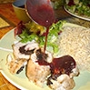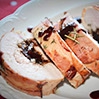 - Roladę wyjąć z piekarnika i po odczekaniu kilku minut pokroić na porcje. Podawać z sosem w oddzielnej miseczce. Roladkę polać sosem dopiero przed podaniem, najlepiej już bezpośrednio na talerzu, dzięki temu sos nie zabarwi mięsa. Podawać z ryżem i surówką.