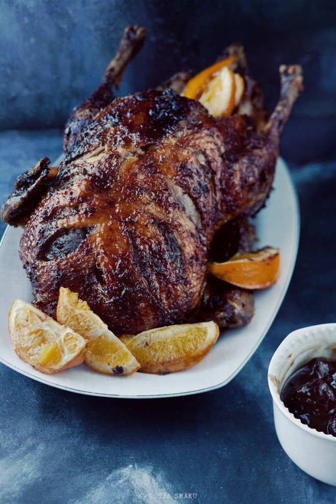 - W 3 godzinie pieczenia również polewać kaczkę 3 - 4 razy sokiem z brytfanki + kilkoma łyżkami wytopionego klarownego tłuszczu.
