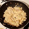 - Na patelni na oleju zeszklić pokrojone w kosteczkę cebule, dodać do farszu. Składniki farszu dobrze wyrobić, łącząc wszystko razem, doprawić solą i pieprzem.