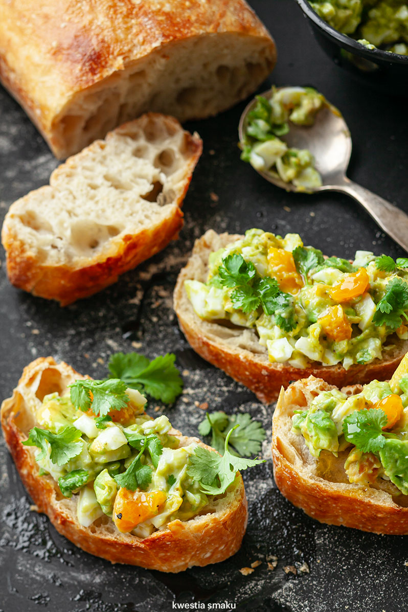 Jeśli brakuje Wam pomysłów na pyszne, zdrowe śniadania pamiętajcie o tym przepisie. Ugotowane jajka można trzymać w lodówce i w razie potrzeby wykorzystać do przygotowania pasty jajecznej z awokado (którego kilka sztuk zawsze warto trzymać na parapecie okna w kuchni ;-) Jeśli kupicie twarde i niedojrzałe awokado zawińcie je w folię aluminiową — po 2-3 dniach będzie idealnie miękkie i dojrzałe.