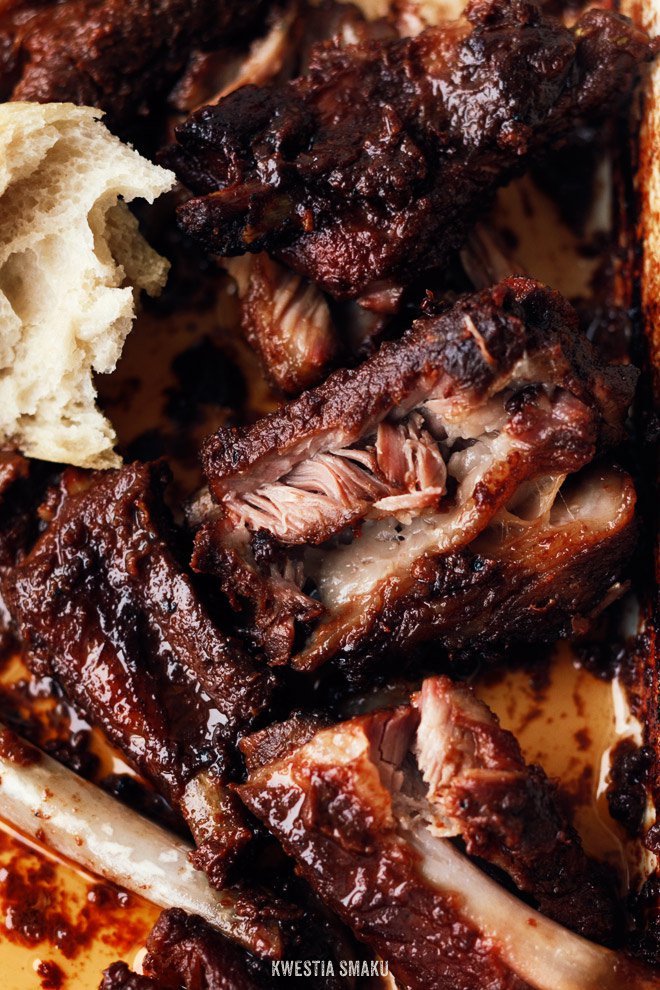 W miniony weekend przeglądałam amerykańskie magazyny kulinarne. Zaciekawił mnie przepis na żeberka (bizona!) w marynacie z dodatkiem kawy. Od razu zabrałam się za czekające na jakiś pomysł żeberka wieprzowe. Do marynaty dodałam syrop klonowy, sos worcestershire, musztardę i jeszcze kilka innych składników. Marynata wyszła rewelacyjna, gęsta, kremowa, aromatyczna; zostawiłam w niej żeberka na całą noc w lodówce.