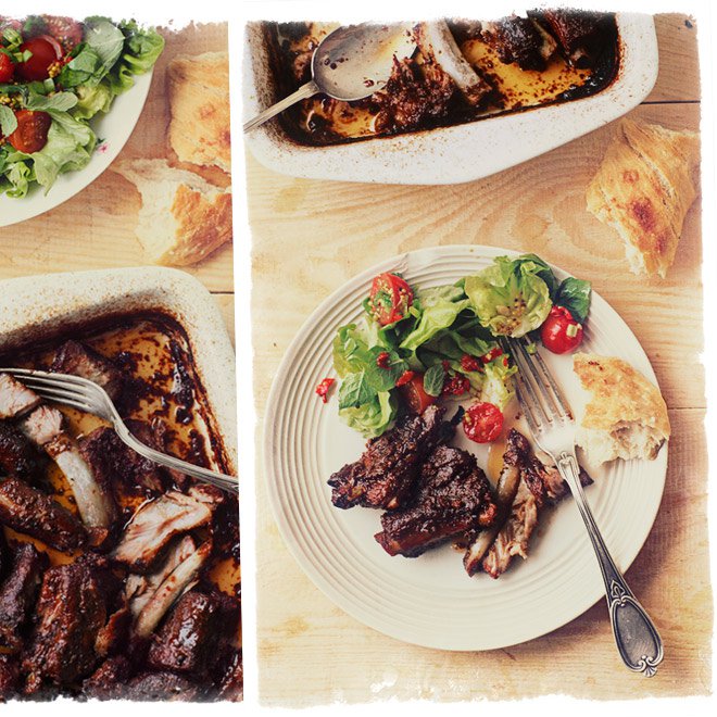 Następnego dnia żeberka upiekłam sprawdzoną metodą, częściowo pod przykryciem częściowo bez. Dokładny czas pieczenia żeberek zależy od ich wielkości, grubości, ilości mięsa i tłuszczu.