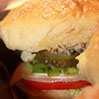 - Bułeczki podgrzać (np. na tosterze lub patelni), kroić na połówki i układać dodatki: sałatę, chili, pomidora, cebulę, burgera, ser, pomidorowy sos BBQ z czereśniami lub chutney ananasowe.