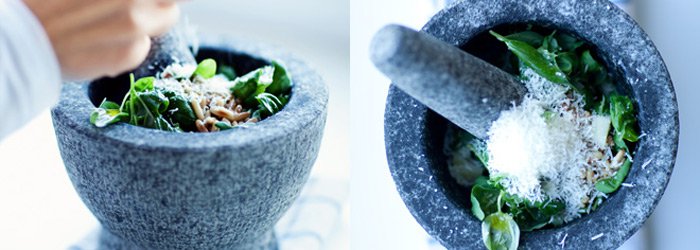 * orzeszki piniowe (choć wchodzą w skład oryginalnego włoskiego pesto, i polecam je użyć do tego przepisu) można zastąpić orzechami nerkowca. Sprawdzą się też pestki dyni lub słonecznika, orzechy włoskie - ale smak takiego pesto będzie nieco inny. Zamiast parmezanu można użyć grana padano, pecorino lub innego twardego sera np. Bursztyn.