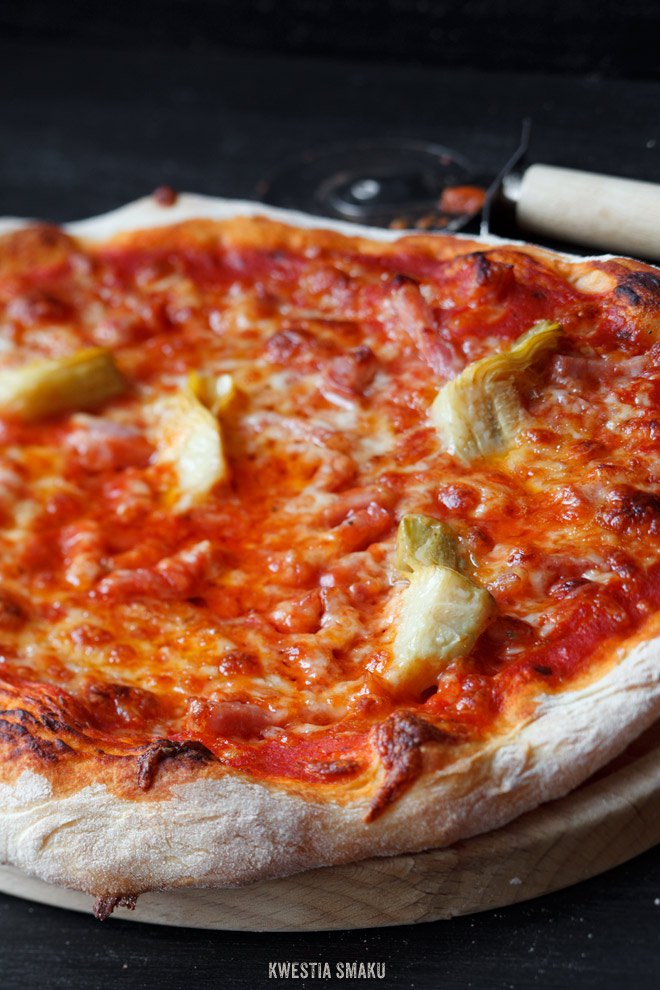 Sekret udanego ciasta na pizzę to dwuetapowe wyrastanie. Pierwszy etap (podobnie jak przy brioszce) odbywa się w niskiej temperaturze, w lodówce. Ciasto po wyrobieniu należy zatem najpierw schować do lodówki (może tam leżeć i czekać na upieczenie do 4 dni). Etap ten zapewnia odpowiednie napowietrzenie ciasta. Jeśli ciasto włożycie do przezroczystego pojemnika, już na następny dzień będziecie mogli zaobserwować jak tworzą się nim bąbelki powietrza. Dzięki nim ciasto będzie lekkie, a wypieczona pizza pięknie wyrośnięta na brzegach, miękka i jednocześnie chrupiąca z zewnątrz.