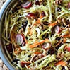 - Wymieszać sok z cytryny z octem, miodem i oliwą, dodać do surówki, doprawić świeżo zmielonym pieprzem oraz solą. Wymieszać i podawać.