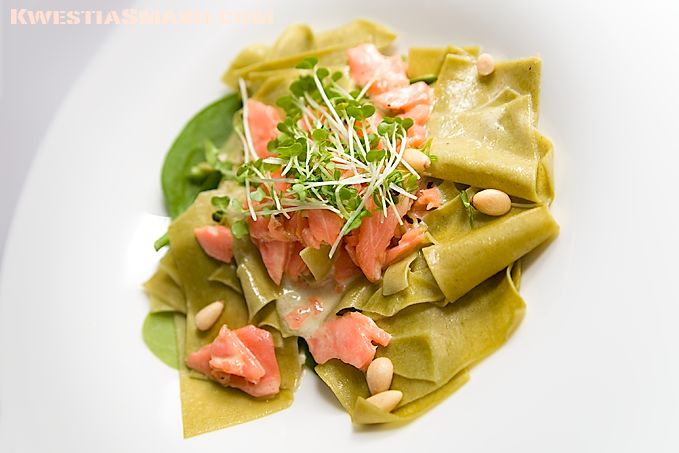admin Makaron z wędzonym łososiem i orzeszkami pinii
