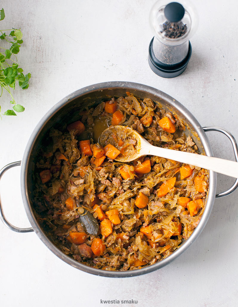 kwestiasmaku Bigos z kiszonej kapusty z soczewicą i dynią