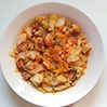 - Kapustę umyć i poszatkować. Do szerokiego garnka wlać połowę oleju i zeszklić posiekaną w kosteczkę cebulę.