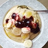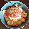 - Wyłożyć do miseczek, dodać resztę banana pokrojonego na plasterki i posypać ziarenkami granatu. Polać syropem klonowym.
