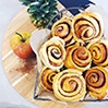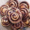 - Zawinąć ciasto w roladki i każdą z nich pokroić w poprzek na 10 plasterków o grubości ok. 2 cm. Ułożyć na dużej prostokątnej blaszce wyłożonej papierem do pieczenia lub w formie 22 x 33 cm lub w 2 okrągłych tortownicach. Odstawić na ok. 15 - 20 minut do wyrośnięcia.