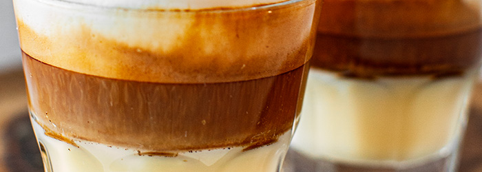 - Do małej szklanki wlać słodzone mleko zagęszczone a następnie powoli kawę, zachowując ułożenie warstw.