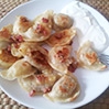 - Po ponownym zagotowaniu zmniejszyć ogień do średniego i gotować pierożki przez około 2 minuty licząc od czasu wypłynięcia ich na powierzchnię wody (do czasu aż ciasto będzie miękkie, sprawdzamy palcem wyławiając jednego pieroga).
