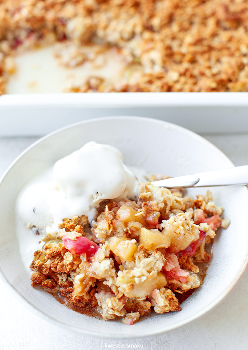 kwestiasmaku Crumble z rabarbarem, jabłkami i płatkami owsianymi
