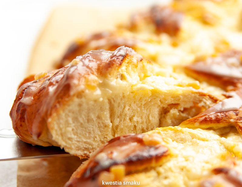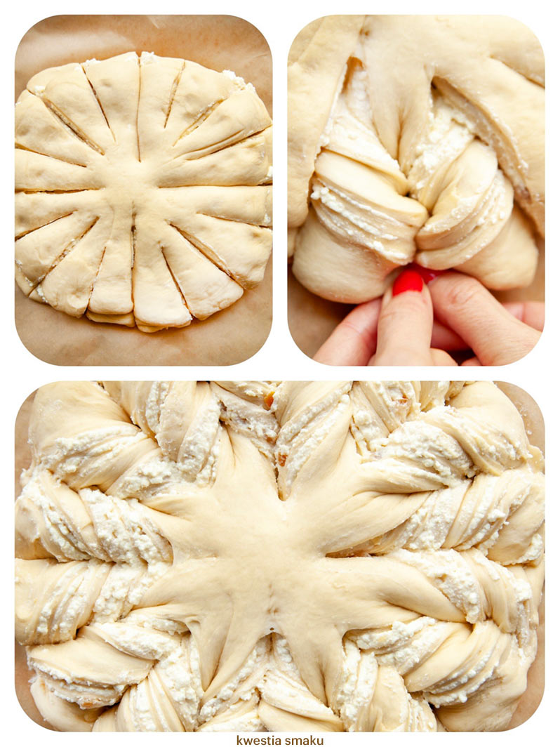 Ciasto drożdżowe w kształcie gwiazdy z nadzieniem serowym.
