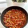 Fasolka szparagowa w sosie pomidorowym z wiejską kiełbasą