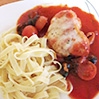Filety z kurczaka w sosie pomidorowym z oliwkami i tartą mozzarellą