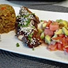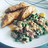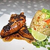 Filety z kurczaka w sosie teriyaki, podawane ze smażonym brązowym ryżem z warzywami