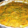 - Układać plasterki batatów w naczyniu, na zakładkę. Po 3 - 4 warstwach posypać mieszanką rozmarynu i czosnku i znów ułożyć 3 - 4 warstwy batatów. Zalać całość śmietanką.