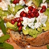 Grzanki z awokado, serem sałatkowym i granatem