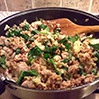Kaszotto z kaszy gryczanej z kurczakiem, szpinakiem, kapustą pekińską i porami