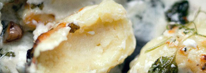 Kluski śląskie zapiekane pod sosem z gorgonzoli