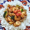 Krewetki z warzywami po chińsku. Podawane z ryżem i dużą ilością pysznego, lekkiego sosu.