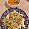 Kurczak w sosie bazyliowym z pomidorkami koktajlowymi