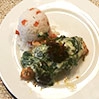 - Szpinak opłukać, osuszyć. Na patelni podgrzać masło z czosnkiem, gdy tylko zacznie skwierczeć dodać szpinak i mieszając podgrzewać aż zwiędnie.