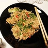 Makaron chow mein smażony z kurczakiem i pak choi