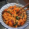 - Dodać pokrojoną w kosteczkę cebulę oraz obraną i startą na tarce marchewkę, wlać dodatkową łyżkę oliwy i smażyć razem przez ok. 1 - 2 minuty, pod koniec dodać przeciśnięty przez praskę czosnek.