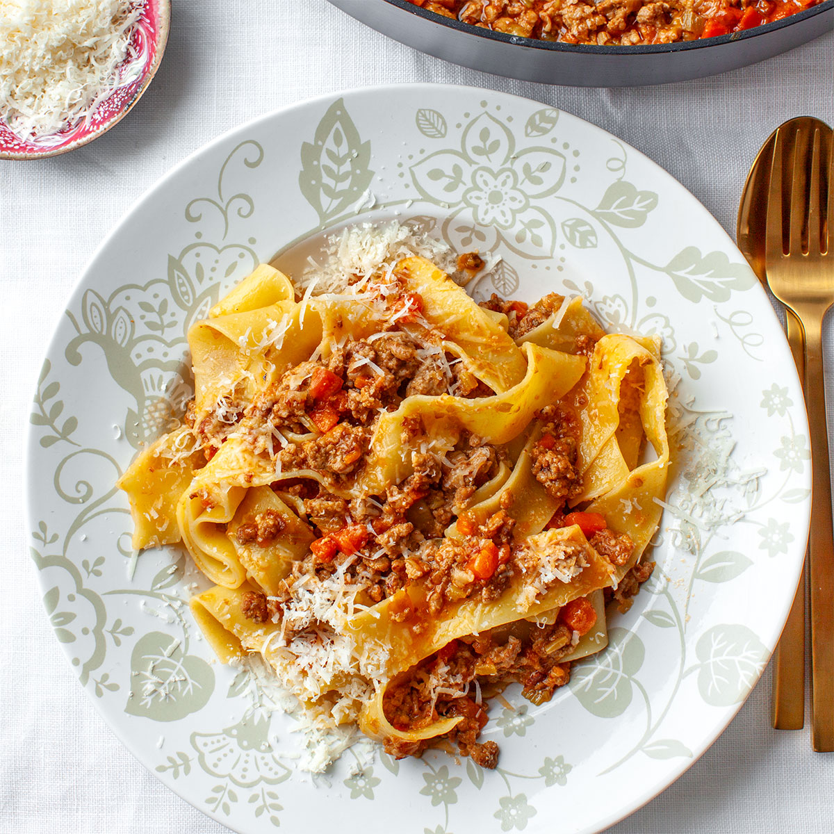 Poniżej przepis na oryginalny, włoski makaron Papardelle al ragù.