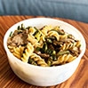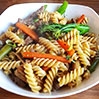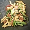 Makaron świderki (najlepiej z pszenicy durum), zielona fasolka szparagowa, dymka (lub gruby szczypior), czosnek. Wszystko w delikatnym sosie z bulionu, sosu sojowego i ostrym posmakiem zielonego pieprzu.