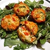 - 8 żaroodpornych kokilkek (lub 8 wgłębień w formie do muffinów lub 8 foremek silikonowych) natłuścić oliwą lub masłem, napełnić masą i wstawić do piekarnika. Piec przez ok. 20 min