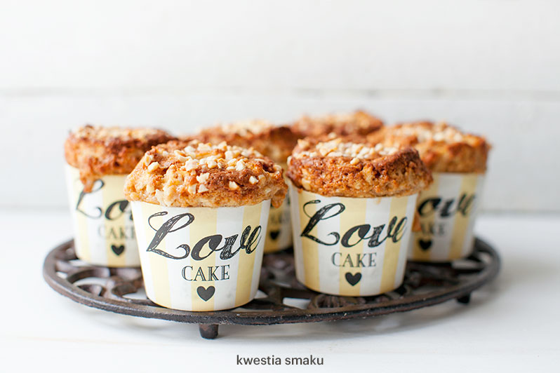 - Piekarnik nagrzać do 190 stopni C. Formę na muffiny wyłożyć 12 papilotkami. Jabłka obrać i zetrzeć na tarce o dużych oczkach.