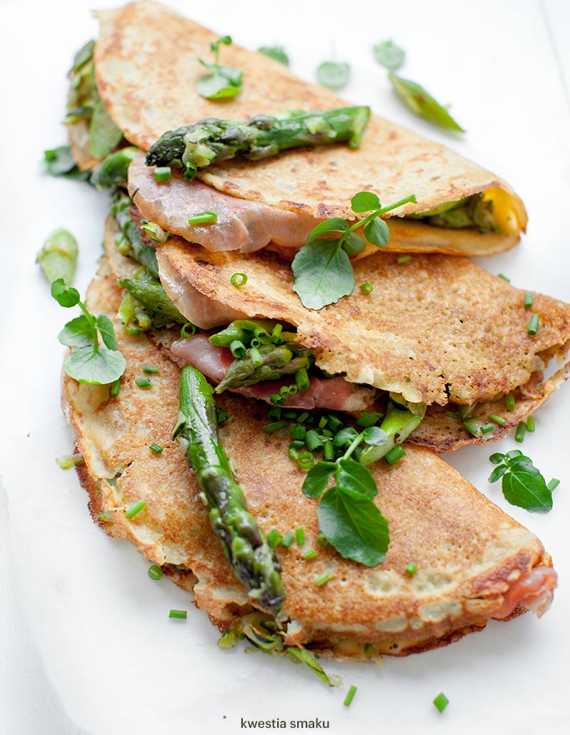 kwestiasmaku Naleśniki jaglane z cukinią, szparagami, szynką i serem