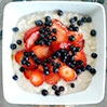 - Truskawki umyć, osuszyć i pokroić na plasterki. Ułożyć na owsiance, skropić sokiem z cytryny i syropem klonowym lub posypać brązowym cukrem. Opcjonalnie posypać dodatkowo jagodami/borówkami.