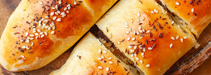 - Wierzch ciasta delikatnie posmarować roztrzepanym jajkiem, posypać kminkiem lub sezamem. Odstawić na około 1/2 godziny. W międzyczasie nagrzewać piekarnik do 180 stopni C.