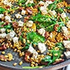 - Dodać pokrojone suszone pomidory i smażyć przez 1 minutę. Dodać opłukany szpinak i mieszać podgrzewając aż zmięknie. Odstawić z ognia i posypać fetą (można obtoczyć ją w suszonym oregano).